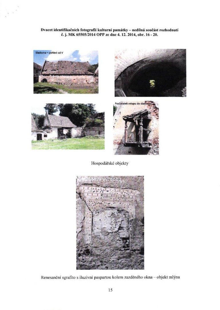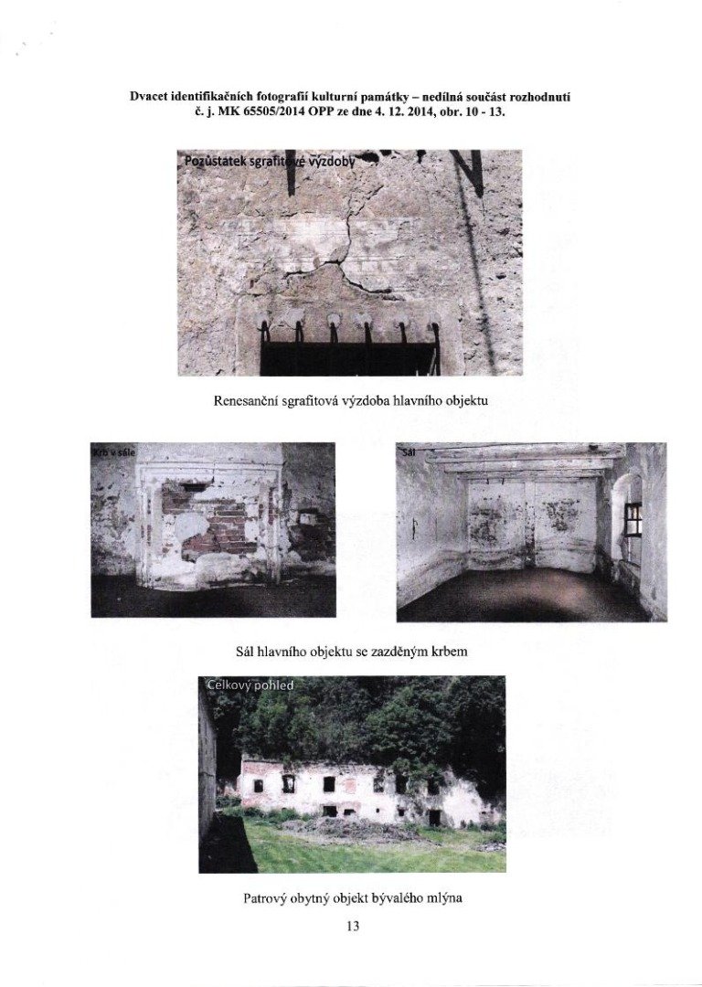 - Je samozřejmé, že k potvrzení či vyvrácení uvedených tvrzení může přispět pouze detailní stavebně historický průzkum celé budovy. K objasnění stavebního vývoje musí být provedeny rovněž průzkumy zásypů nad klenutým přízemím, a to včetně dlouhé místnosti s dlaždicemi v I. patře (“hlavní sál “). Není vyloučeno, že se zde mohou objevit důležité doklady k poznán í původního půdorysu I. patra.