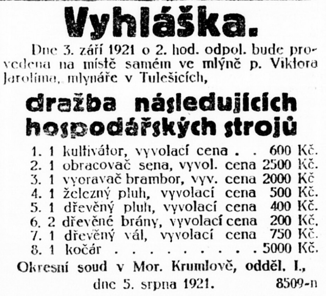 Výpisy z křestní matriky -Oulehlův mlýn: