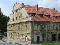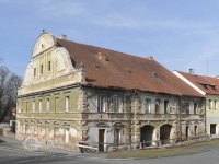 Pohled na zdobenou fasádu mlýna, 2006, © Šimek, (Prvky na obrázku: plastická omítková výzdoba fasád a štítů)