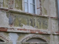 Bosované nároží mlýna, 2006, © Šimek, (Prvky na obrázku: plastická omítková výzdoba fasád a štítů)