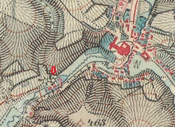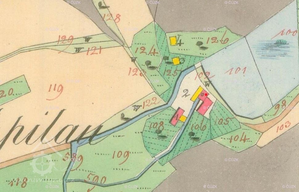 Mlýn dohledán na mapách I. vojenského mapování. Kousek nad mlýnem blíže k Poutnímu kostelu Jména Panny Marie se nacházela pravděpodobně pila, proto je mlýn zmiňován jako Nad pilou.