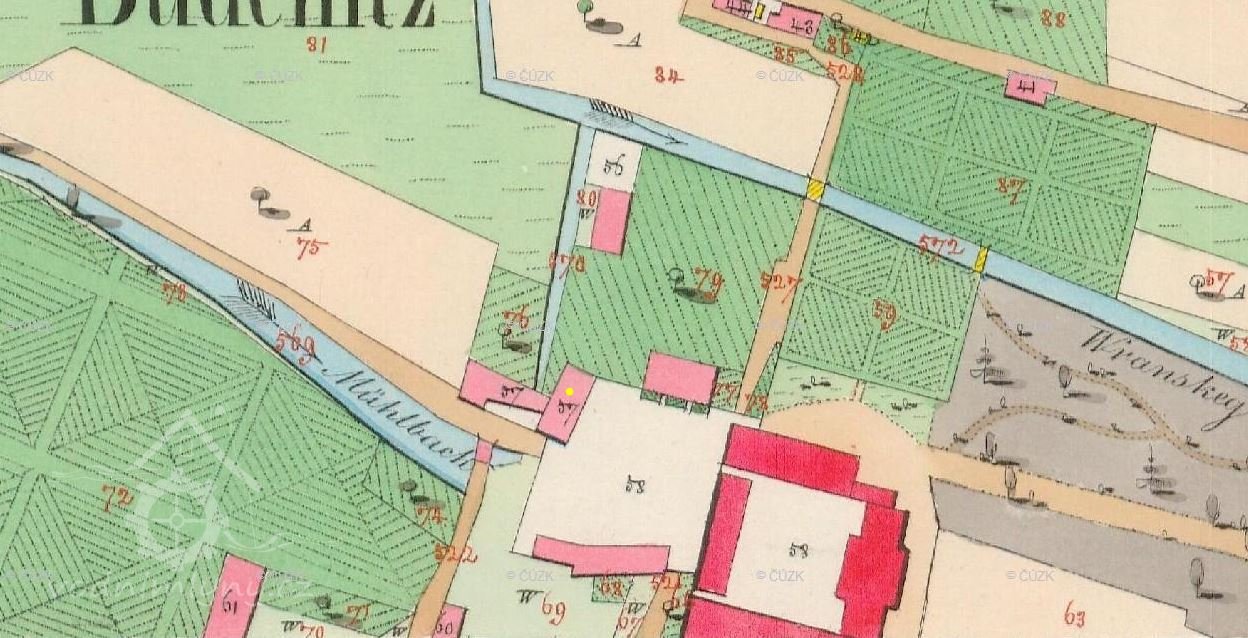 Po r. 1765 zřizoval majitel panství Jan Josef Kinský v okolí zámku hostpodářské objekty - mlýn, sýpku, sady, bažantnici
