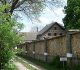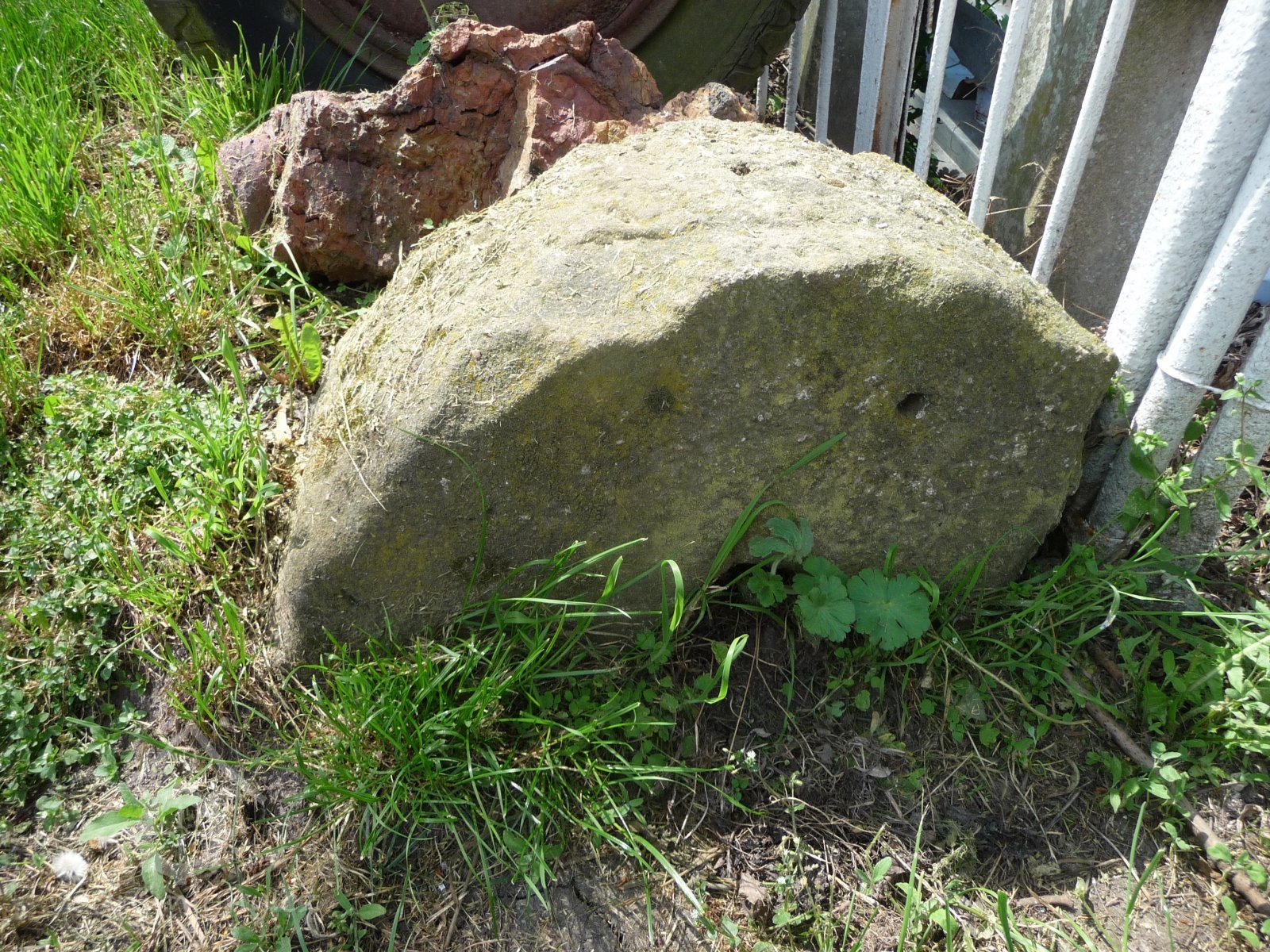 Na dvoře jsou uloženy mlecí kameny.