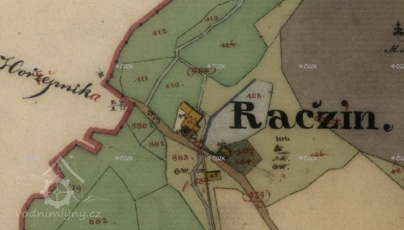V malebném údolí někola potoků stojí dnes rekonstruovaná budova byvalého mlýna Račín. V jednom z dokumentů uložených v archivu je uváděno, že zde mlýn byl již před rokem 1712. Přesnější údaje o technologii pochází až z roku 1924. Na konci druhé světové války byla instalována turbína.