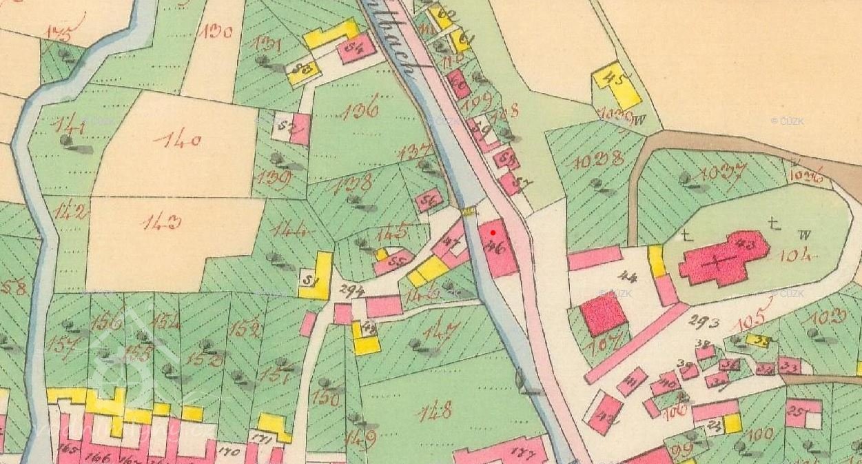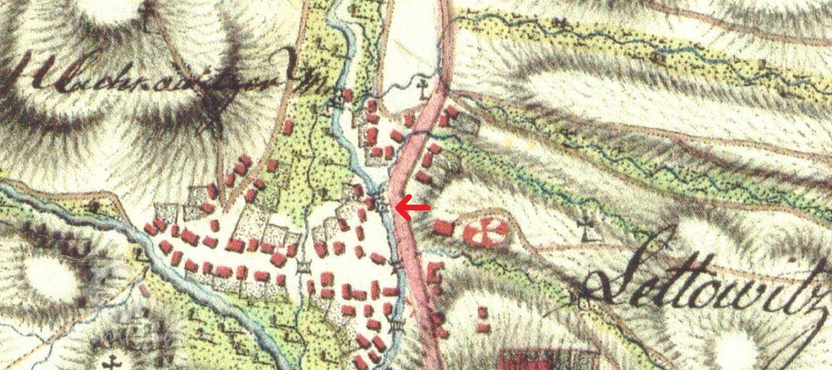 Mlýn je zachycen již na mapě I. voj. mapování.