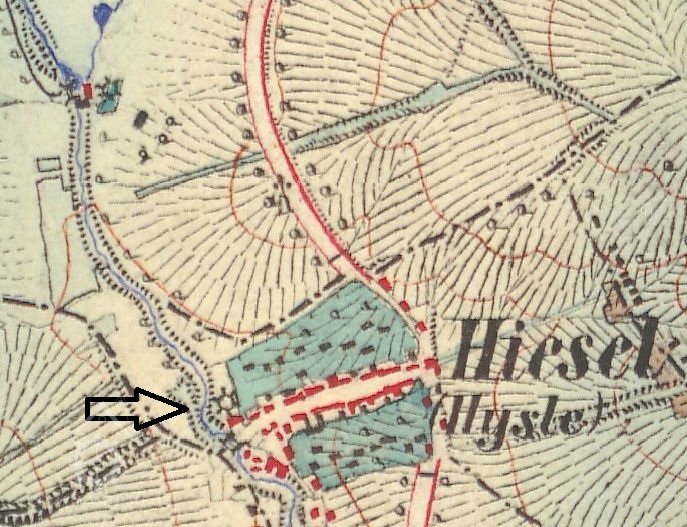 Mlýn stojící na západním konci návsi obce Hýsly. Mlýnice je součástí severojižně orientované budovy, dnes dlouhé 40m. Budovu lze rozčlenit na tři části: severní, střední a jižní. Severní část obsahuje prostory pro mlýnský provoz. Střední část, zachycená spolu se severní na Císařském otisku, sloužila obytným účelům. Dle současné majitelky byla k severní části doplněna pálenice, která se následně přesunula do dodatečně přistavěné jižní části (v ní dnes pálenice zrušena, využíváno k obytným účelům).