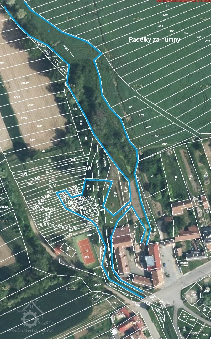 V přívodu vody k mlýnu je znatelný rozpor mezi Císařským otiskem a současným stavem. Přitom v současném Katastru je možné vysledovat obě varianty. Dnes stojí asi 100m před mlýnicí jez. Voda přes něj padající teče jižním směrem, zatímco voda k mlýnu pokračuje na JV (dnes část náhonu zasypána). Na Císařském otisku jez není, všechna voda pokračuje k JV - a teprve po asi 50m před mlýnicí se dělí na vodu pokračující k mlýnu a na "jalové" koryto.