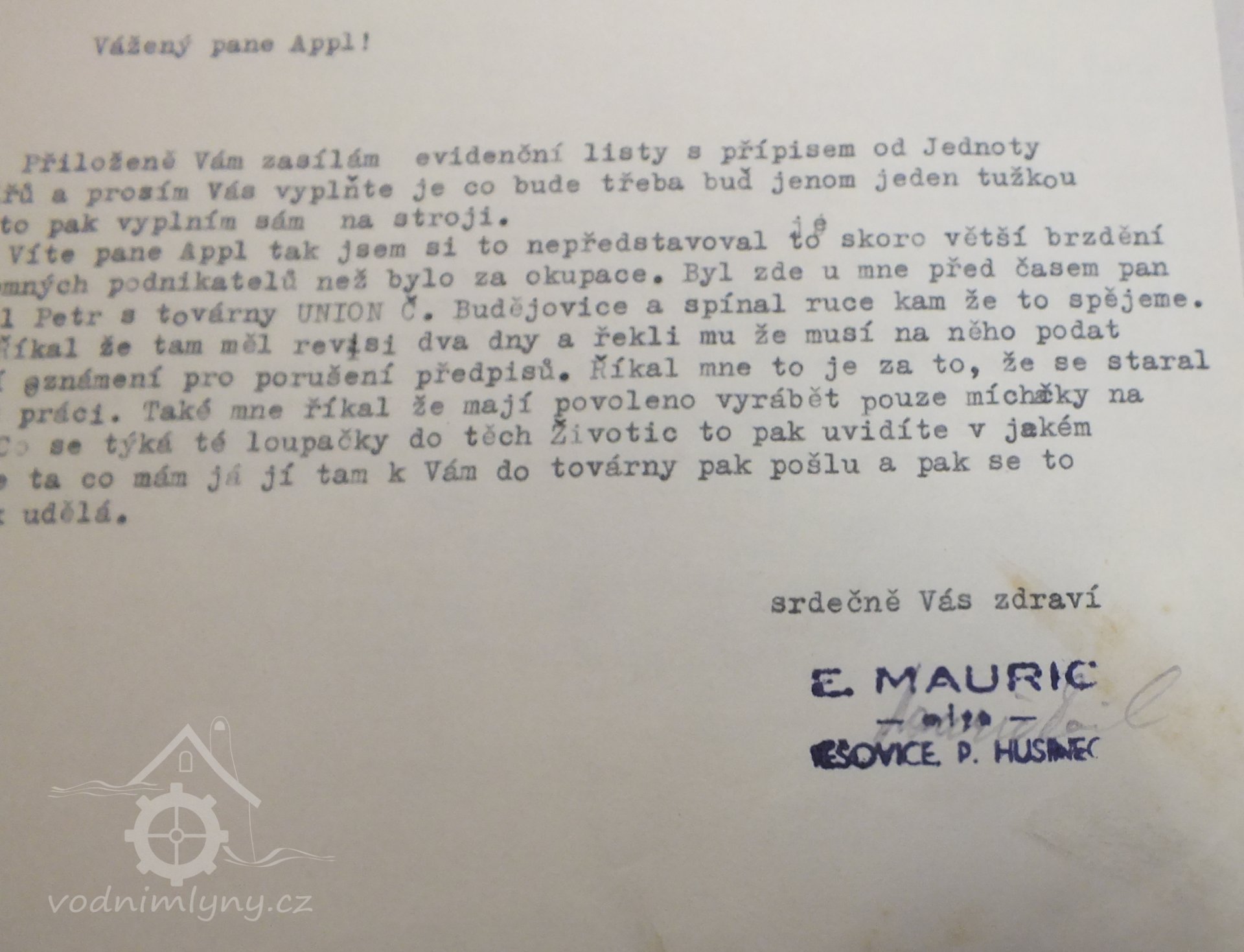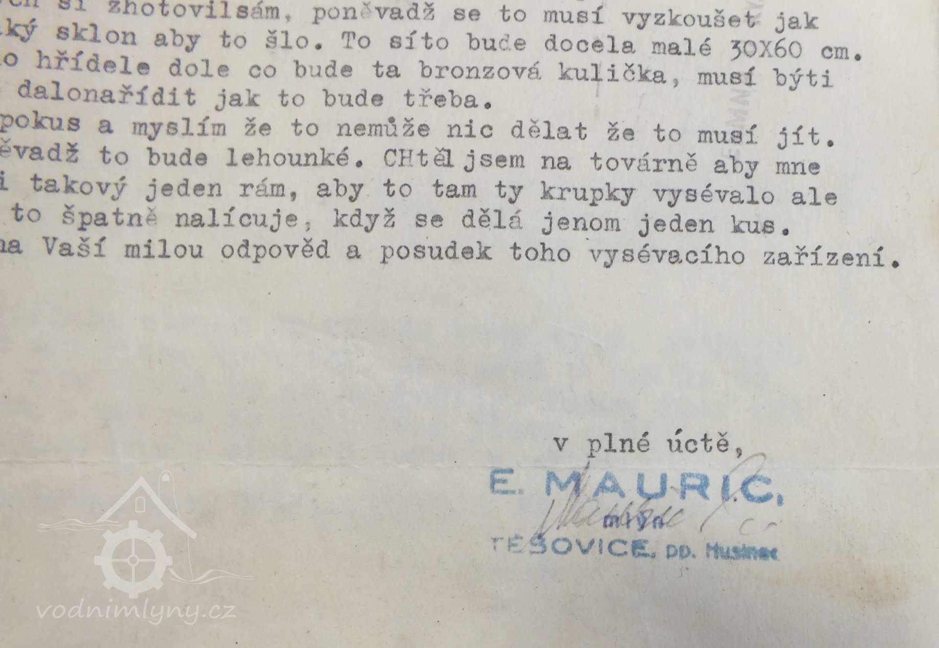 V roce 1930 byl majitelem mlýna Emil Mauric.