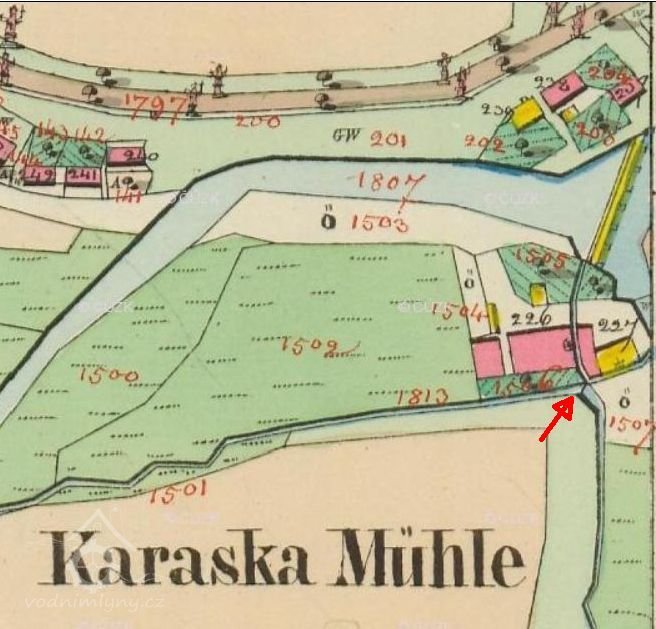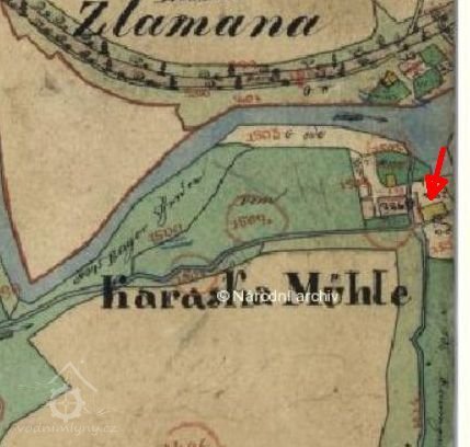 1. května 1763 Jan Karásek zakoupil emfyteuticky mlýn za 650 zl. (vlastní již 4 mlýny - mj. Dersiebův a Frantův)