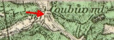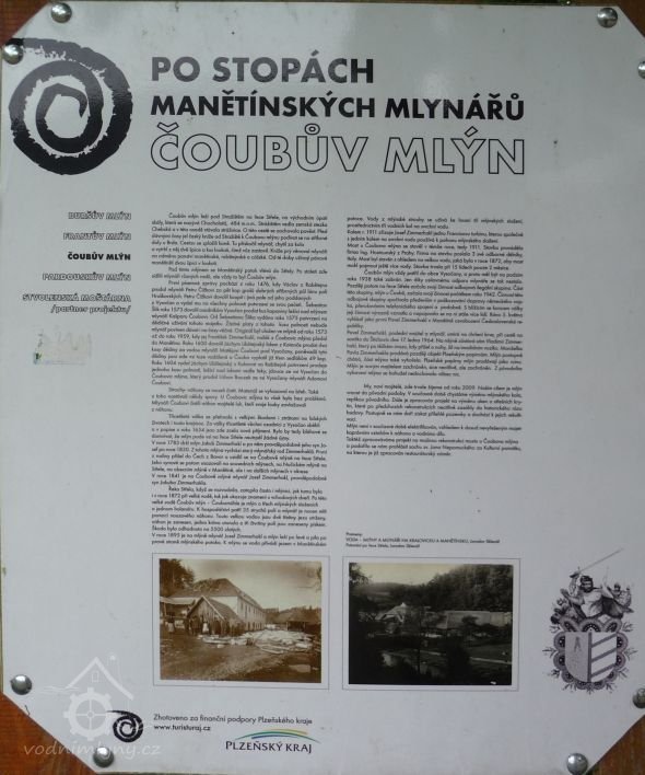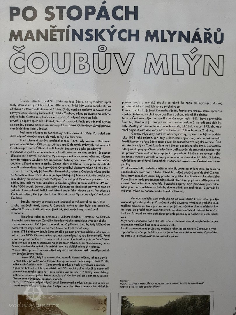 1589 Jaroslav Libštejnský z Kolovrat pohnal před soud Jeronýma Hrobčického na Manětíně, že lidé Hrobčického, když přišli k Čoubovu mlýnu, nově udělaný jez rozkopali a tím mlynáře v bídu uvedli. Král Rudolf poručil Hrobčickému, aby dal jez opravit a mlynáře víckrát neobtěžoval.