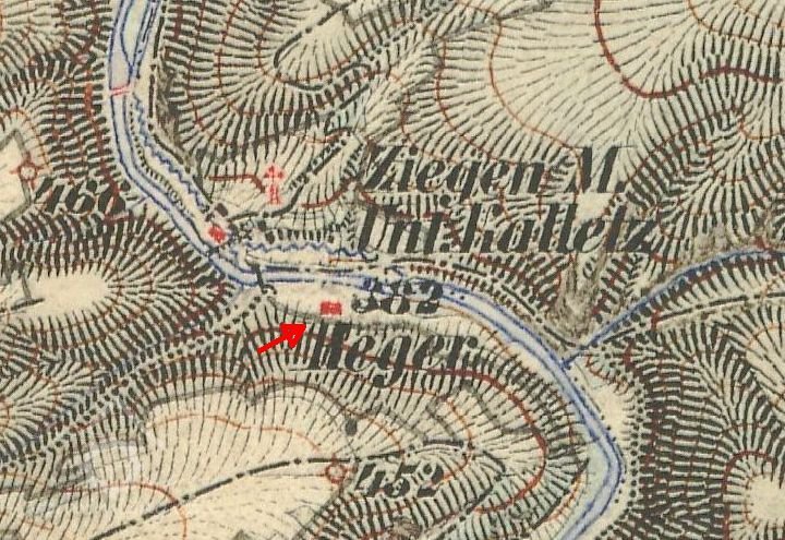 Mlýn je zakreslen na mapě II. vojenského mapování se symbolem MM - r. 1836 - 52.