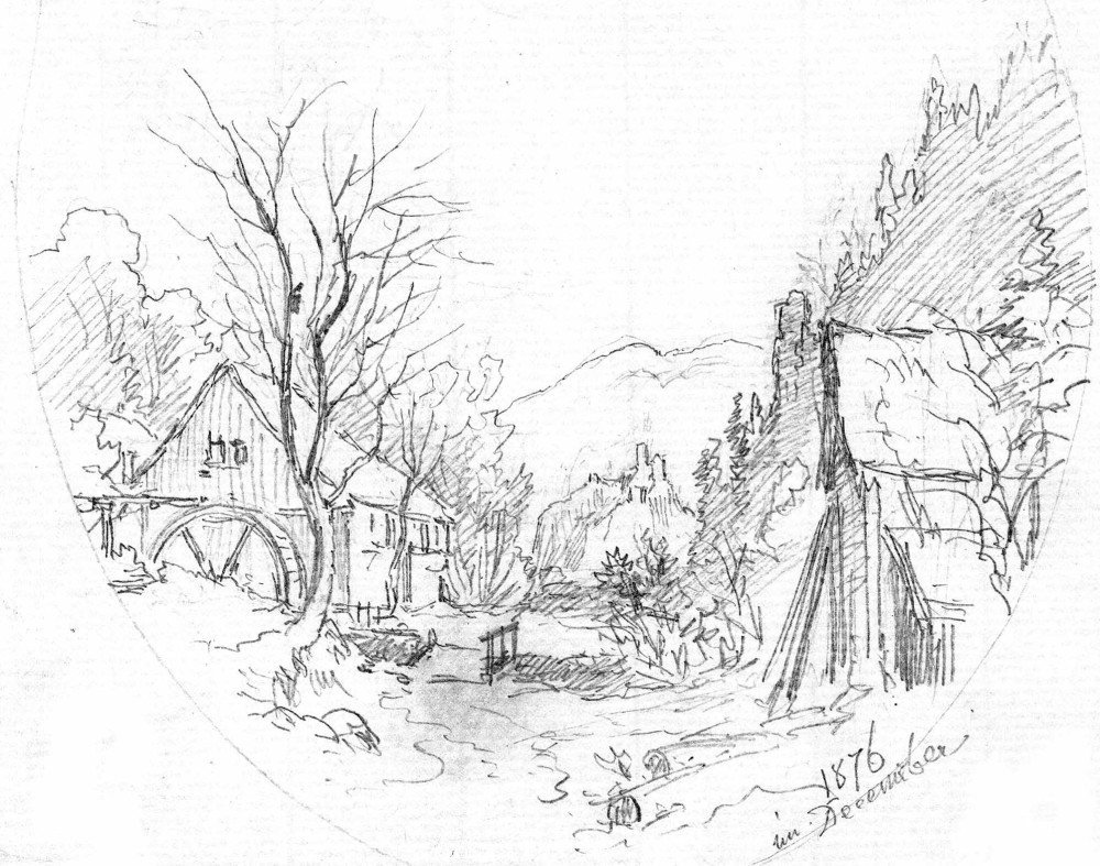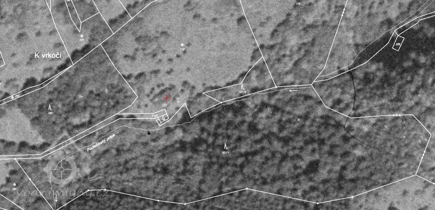 Nad dolejším vodopádem nalezá se ještě jiný, těžko přístupný. V úzkém, hlubokém úvalu, jímž ručej s vysočiny k vodopádu spěchá, jest starý, polo spadlý, bývalý mlýn, Čertův zvaný; romanticky ležící v úplné od světa odloučenosti, mezi vždy zelenými luhy. Nad ním k severu již na vysočině, ze které ručej vzniká, jest ves Podlešín.