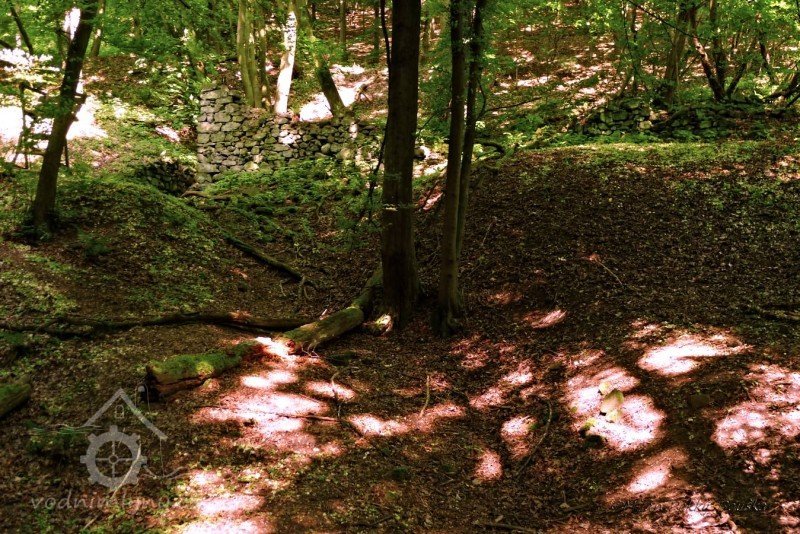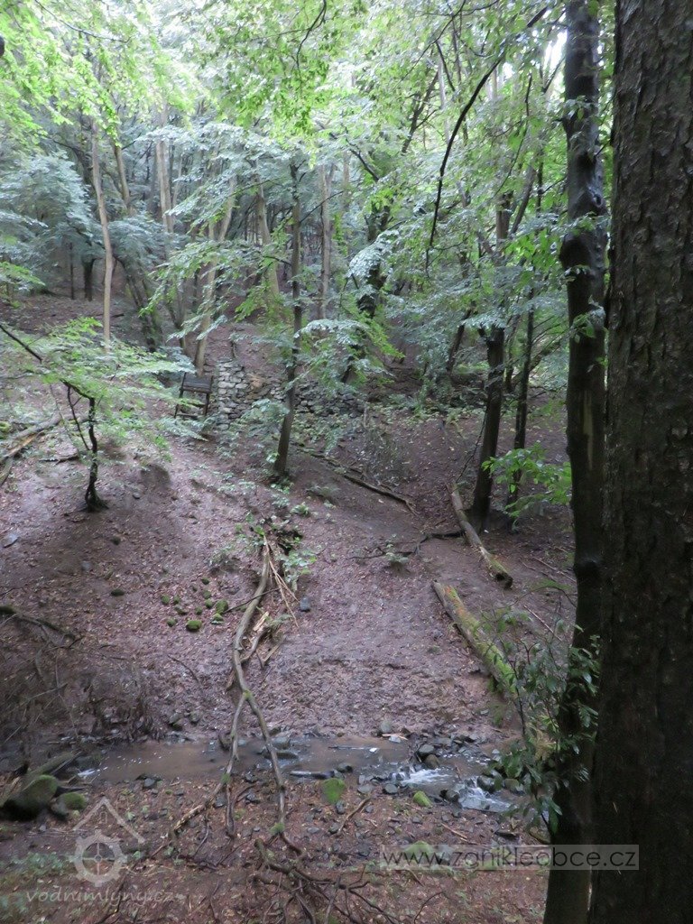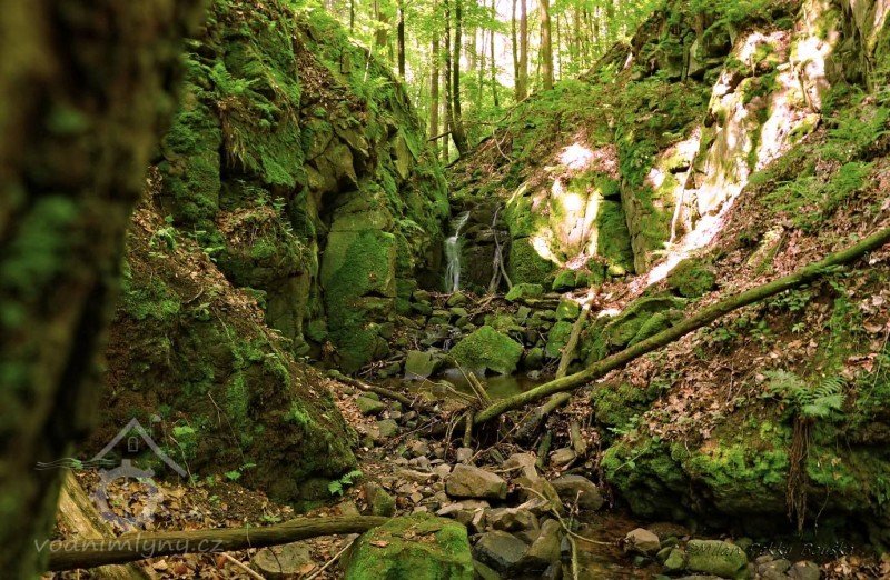 V závěru svého toku udělal velký skok ze skály, který jsme nazvali Vaňovský vodopád. Představte si, že v horní části této stružky stával mlýn na obilí. Jeho trosky se nacházejí doprava mimo cestu. Rozvaliny byly později zvány Čertův mlýn a lidé se tomuto místu raději vyhnuli.