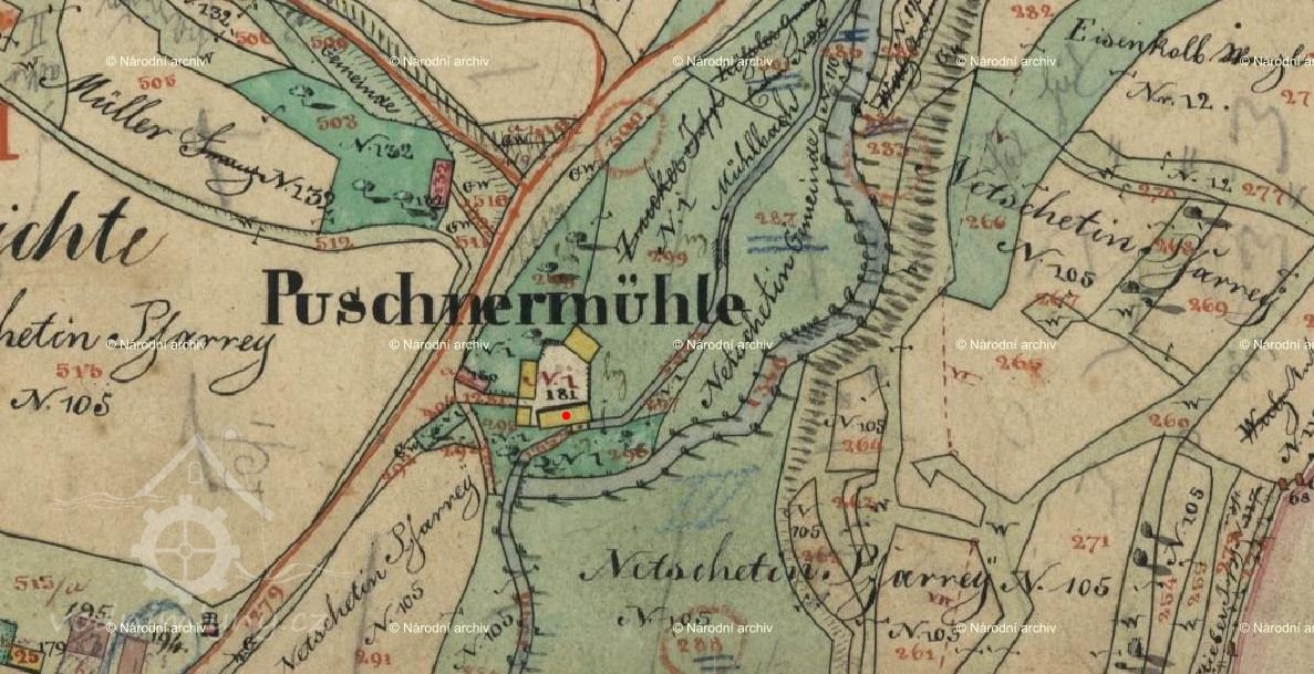 1651 Soupis poddaných podle víry: mlynář Martin Pušnr (41), manželka Manda (38), synové Matěj (15), Jan (10) a David (7), dcery Alžběta (12) a Káča (4), všichni poddaní katolíci