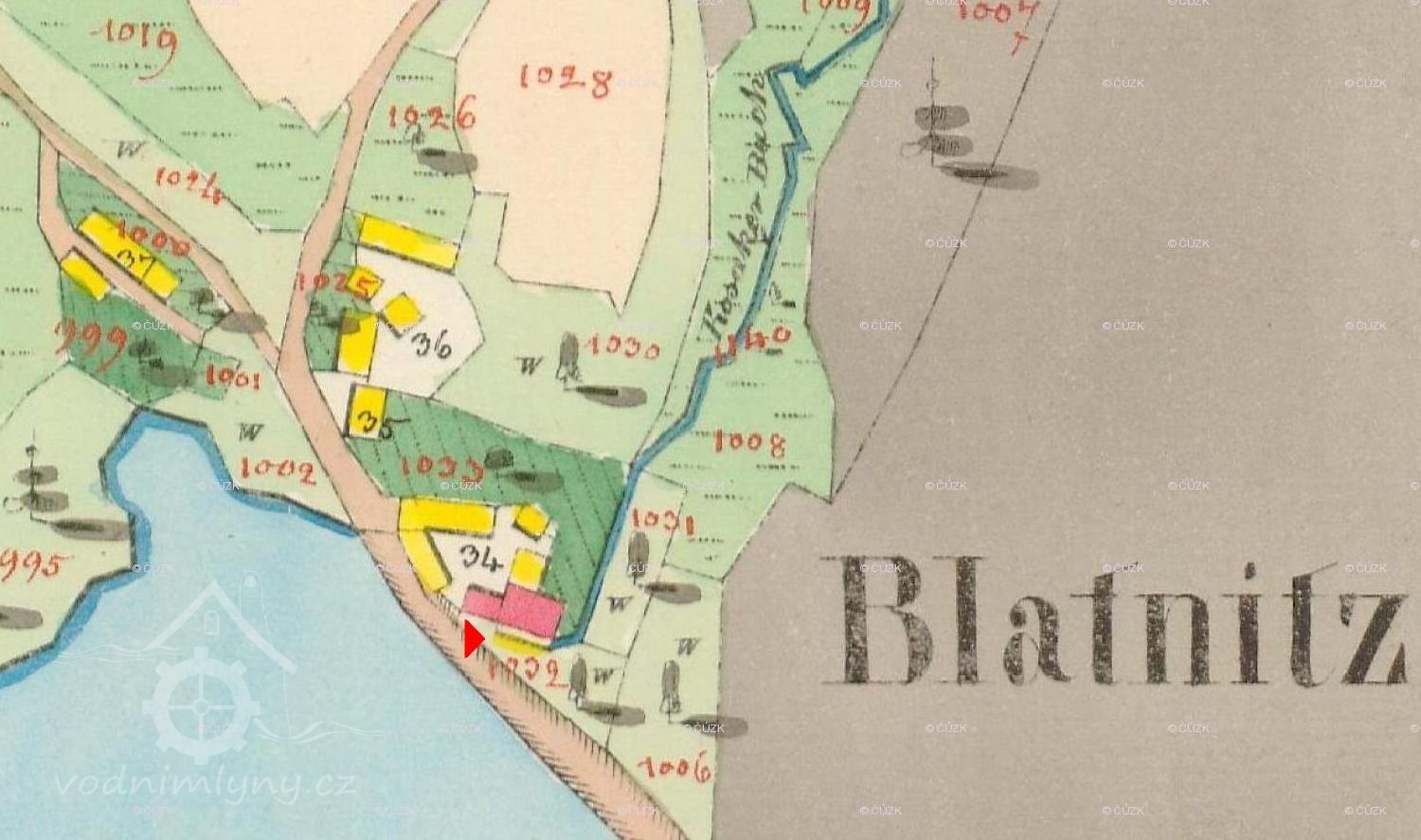 Jméno majitele mlýna a bydliště: Lučan Vojtěch, Pojbuky-Blatnice 3, p. Hory Smilovy