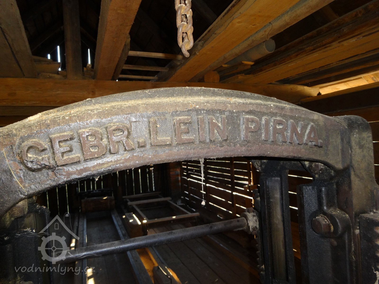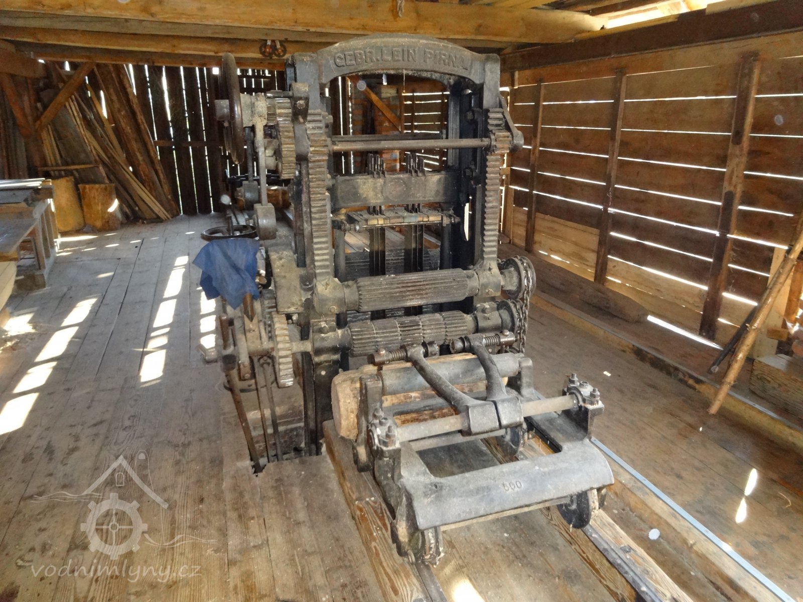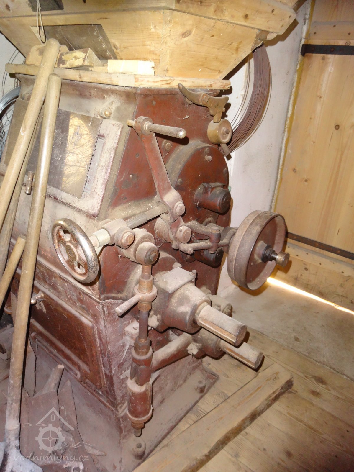 Vodní kolo jediné, na svrchní vodu o průměru 5,1m a šířce 950 mm pohánělo loupačku, jeden francouzský kámen o průměru 950 mm, jednu válcovou stolici jednopárovou 500x300 mm a příslušenství