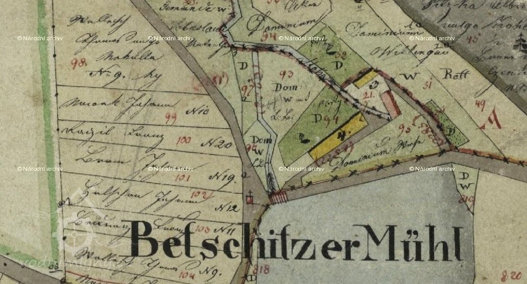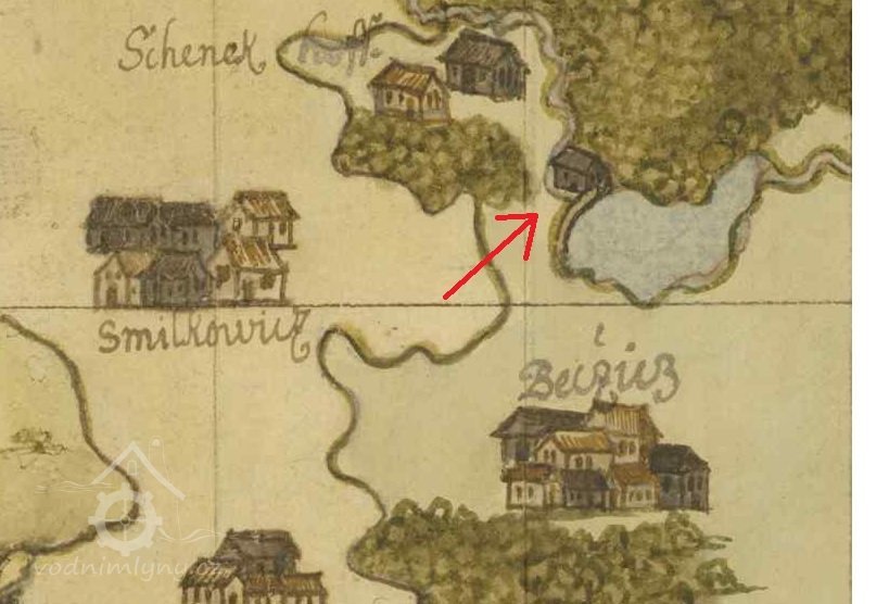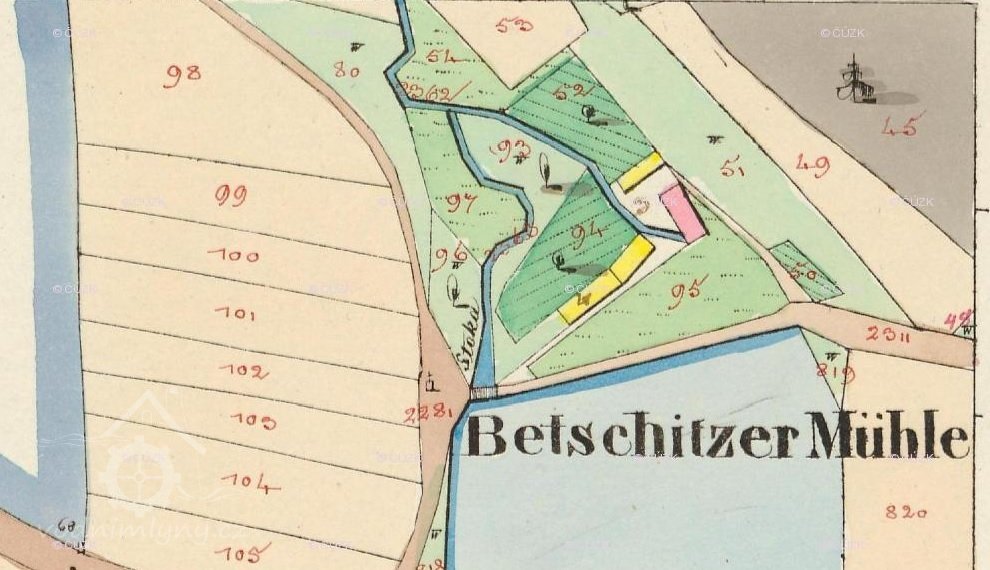 1930 - Josef Mrzílek, mlýn, 1 kolo na svrchní vodu, průtok 80 l/s, spád vody 5m.