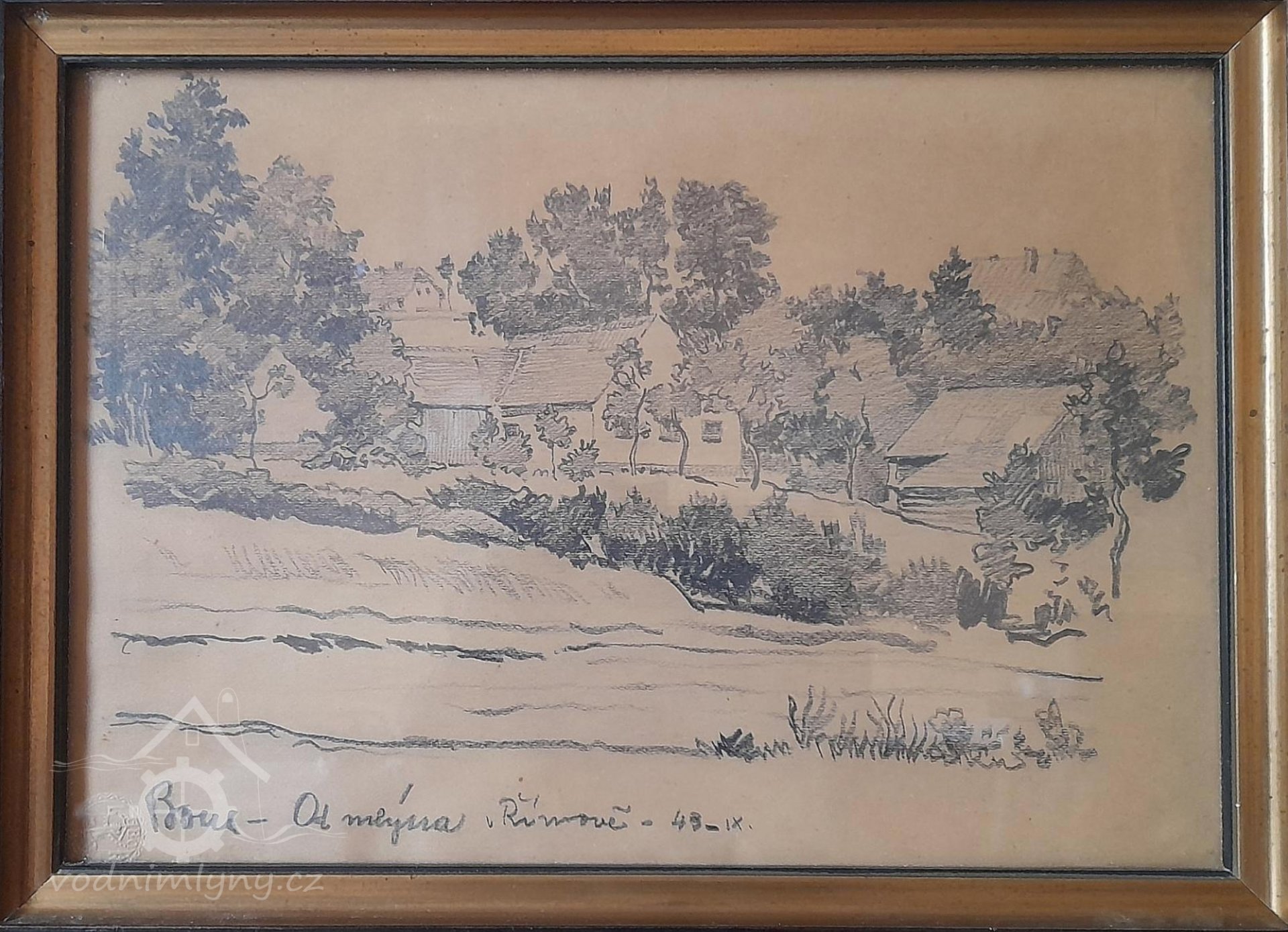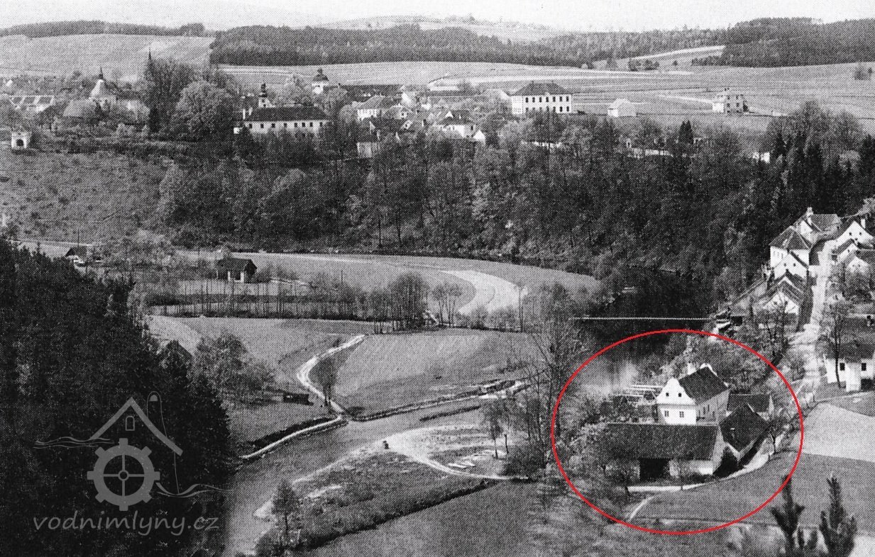 1930 - Rolnické obilní skladiště, mlýn a pila, 2 kola na spodní vodu, průtok vody 924 l/s a 446 l/s, spád 2m a 2m.