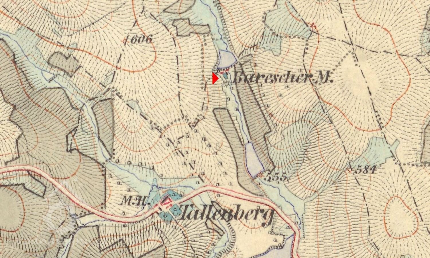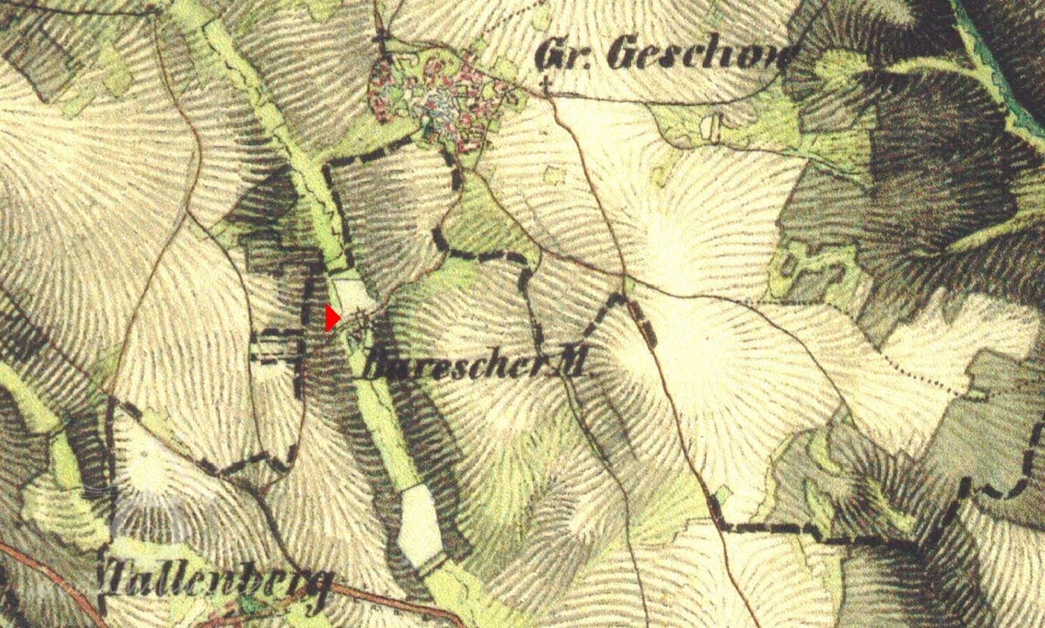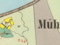 ...Maloježovští dostali příděl půdy z bývalého „Šustova mlýna“, který páni asi v létech 1890 koupili, budovy zrušili a pozemky přivtělili k svému panství. V době parcelace stály již jen holé zdi a kde kdysi stával „Šustův mlýn“, jest nyní pěkná louka, první parcel pod hrází po které vede cesta z Velkého Ježova do Pojbuk... Z Malého Ježova dostali půdu... Vaněk Frant. 5 měr pole, 1 míru louky (bývalý rybník u Šustova mlýna)...