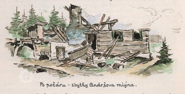 3) Předposlední majitel František Andrš se večer v hospodě vsadil s místním truhlářem, že mu do 7 hodin do rána dodá do mlýna hotovou a nalakovanou rakev. Sázku prohrál, truhlář rakev před svítáním donesl a tato až do požáru děsila návštěvníky mlýna.