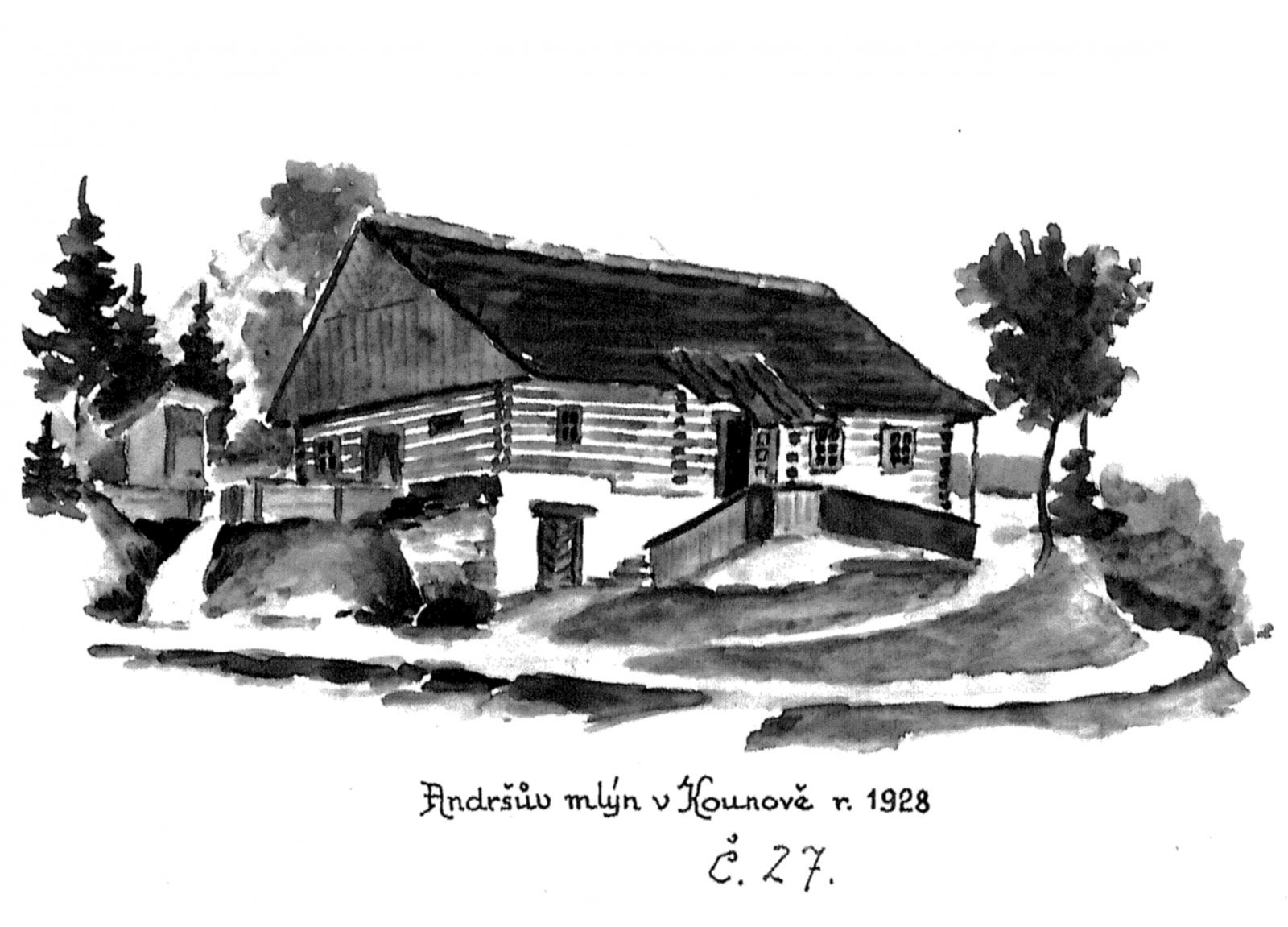 Kounov čp. 27, bývalo u Andršů. Na místě, kde stával dřevěný mlýn, který roku 1934 vyhořel, bylo postaveno nové stavení, kde se tkalcovalo. Nyní dům manželů Remešových.