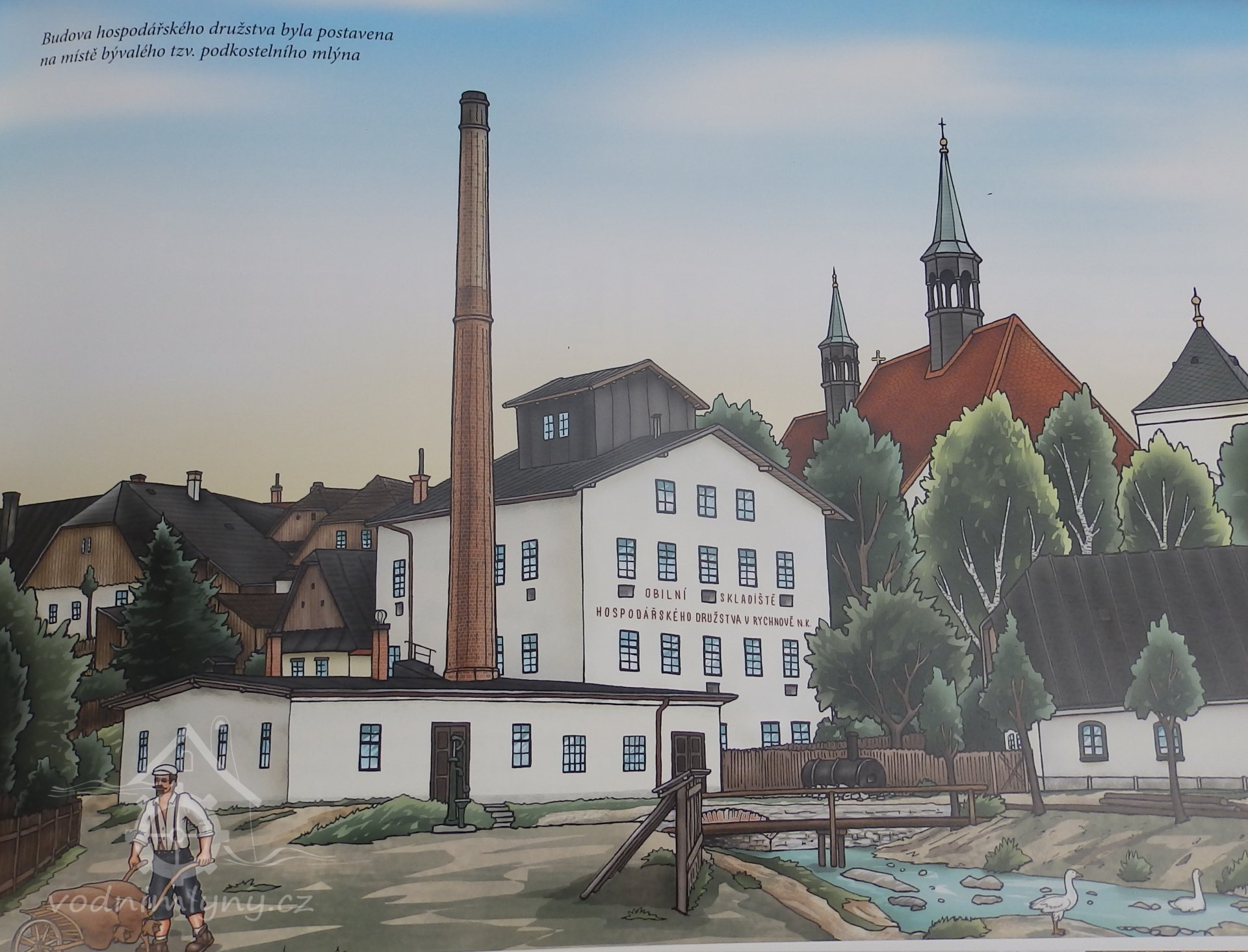 Na místě mlýna zřízeno skladiště Hospodářského družstva v Rychnově nad Kněžnou.