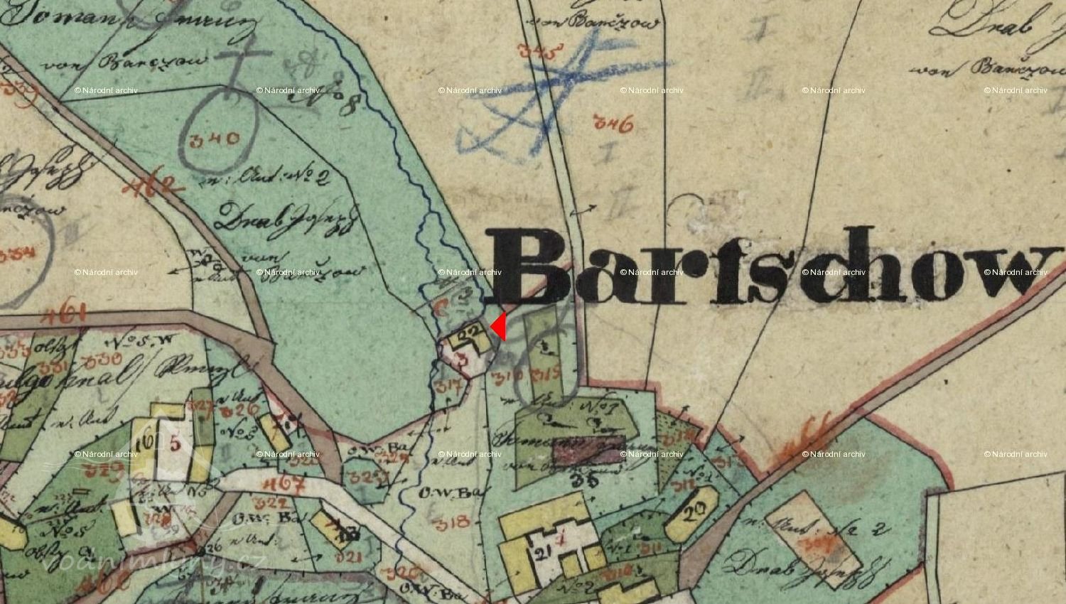 Uprostřed osady Barčov, nedaleko Miličína jsou vidět zbytky budov bývalého mlýna. Při návštěvě v létě nelze nic dalšího zjistit. Mlýn je zapsán ve Vodní knize I OÚ Tábor na straně 218, kde jsou zápisy před rokem 1880 a poslední z roku 1940.