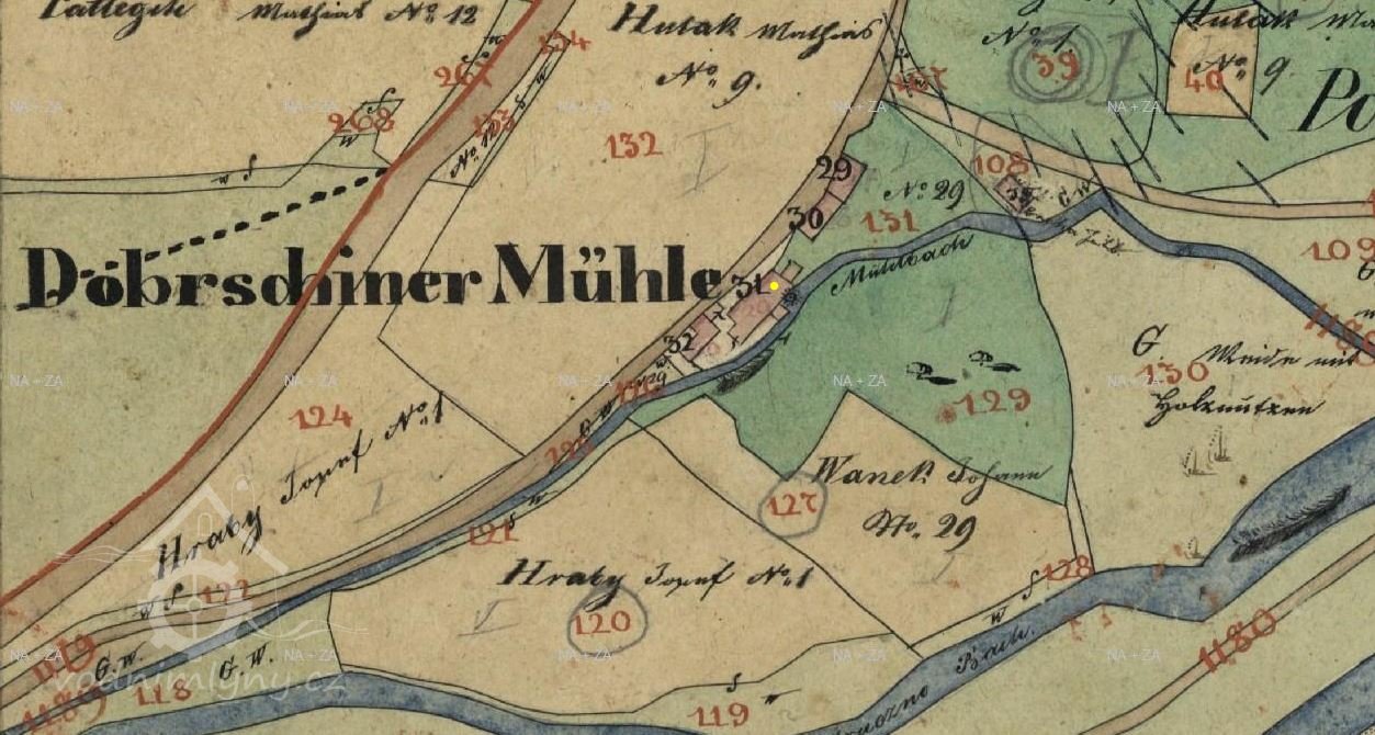 Mlýn je zachycen již na mapě I. voj. mapování.