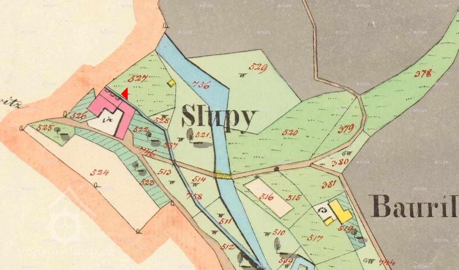 Mlýn uveden v Seznamu vodních děl Republiky československé z r. 1930, maj. Antonie Zimmermanová