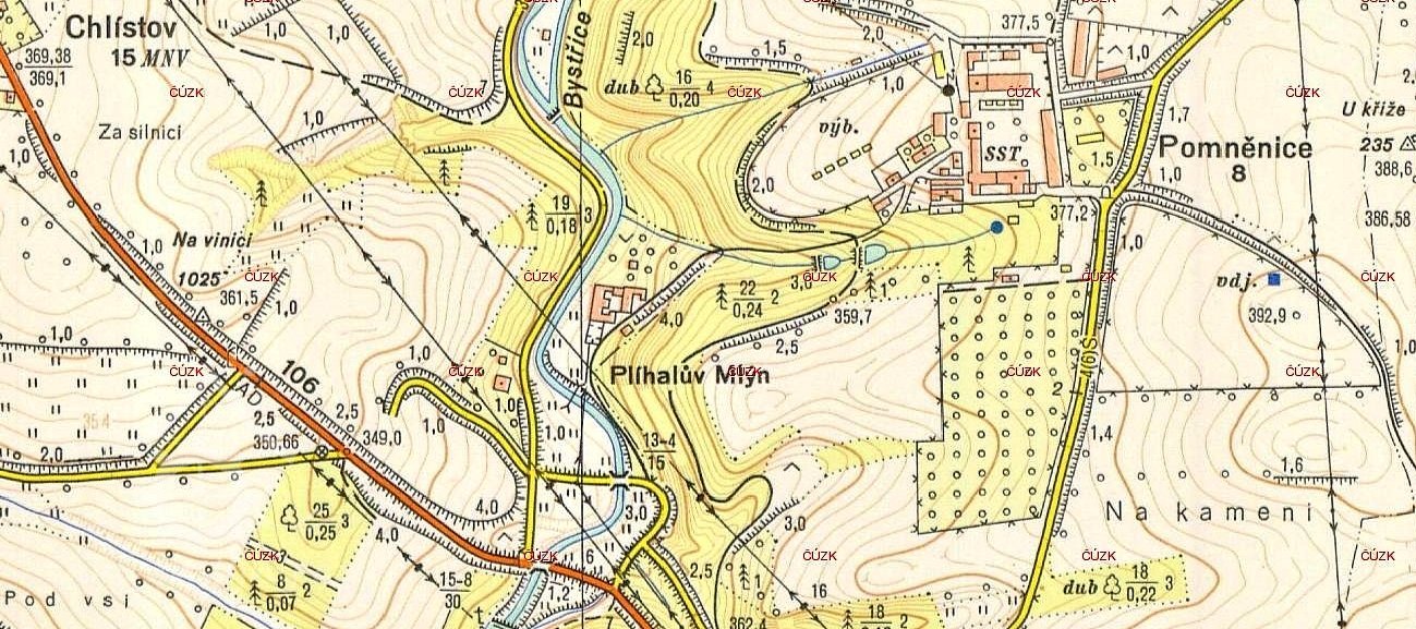 Jedním z nejčastějších stěžovatelů byl i Jan Párys, jehož rod vlastnil po staletí mlýn U Plíhalů pod dvorem Pomněnice. Obě stavby vidíme společně na prvorepublikovém snímku, který by dnes již nebyl realizovatelný. Serpentina silnice z Benešova na Chlístov byla později napřímena v nové trase a výhled beztak zarostl stromovím.