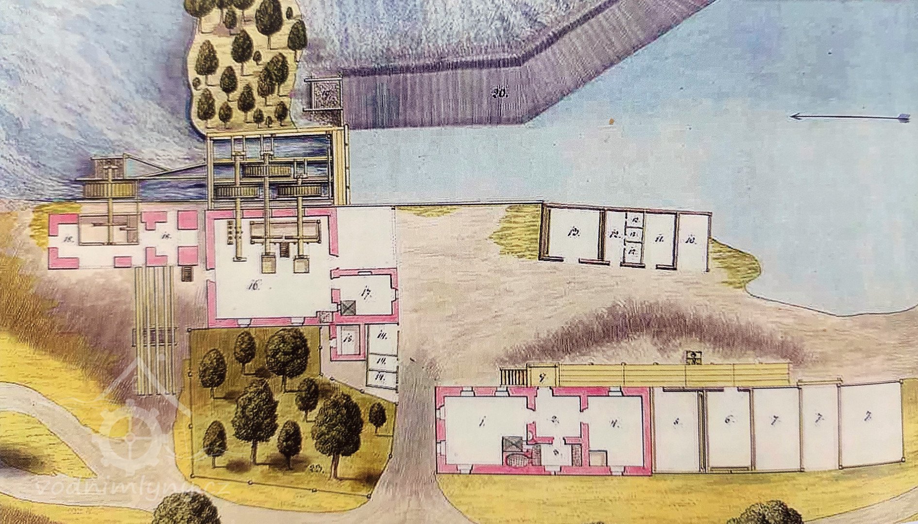 Popis1930: 2 kola na spodní vodu, hltnost 0,713 m3/s, spád 1,4 m, výkon 6 HP