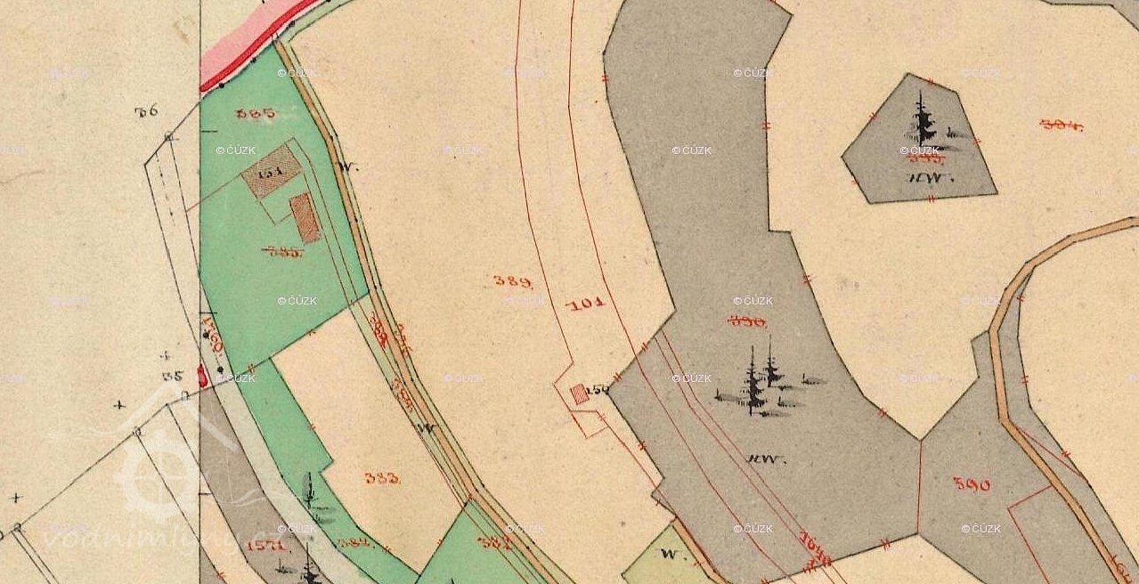Popis1930: 1 koo na svrchní vodu, hltnost 0,27 m3/s, spád 3 m, hltnost 7 HP