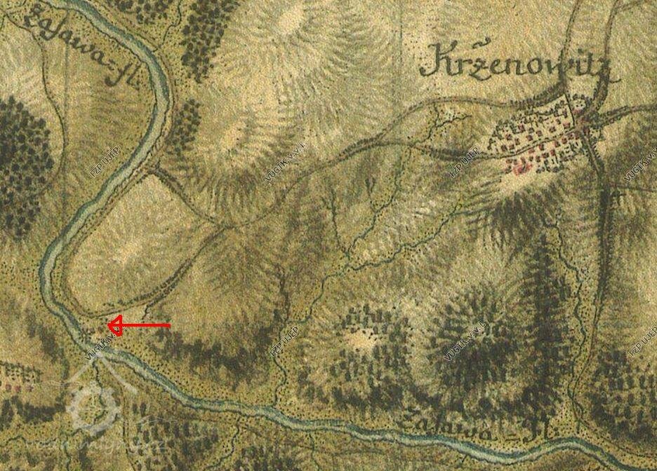 Mlýn je zakreslen na I. voj. mapování v letech 1764-68.