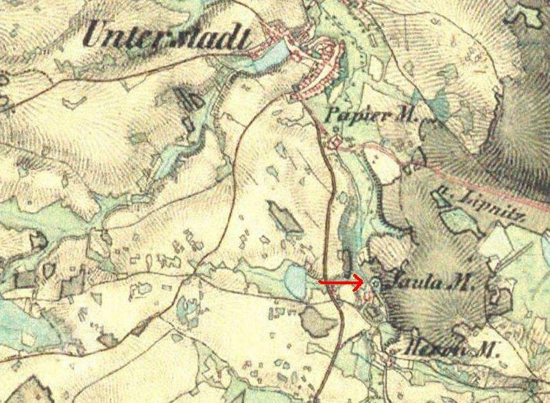 Mlýn je jako Ssaulův označen i na II. vojenském mapování v letech 1836-52.