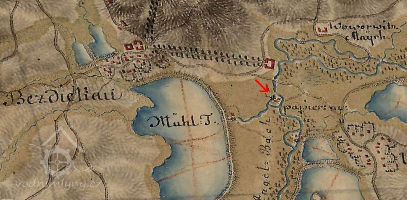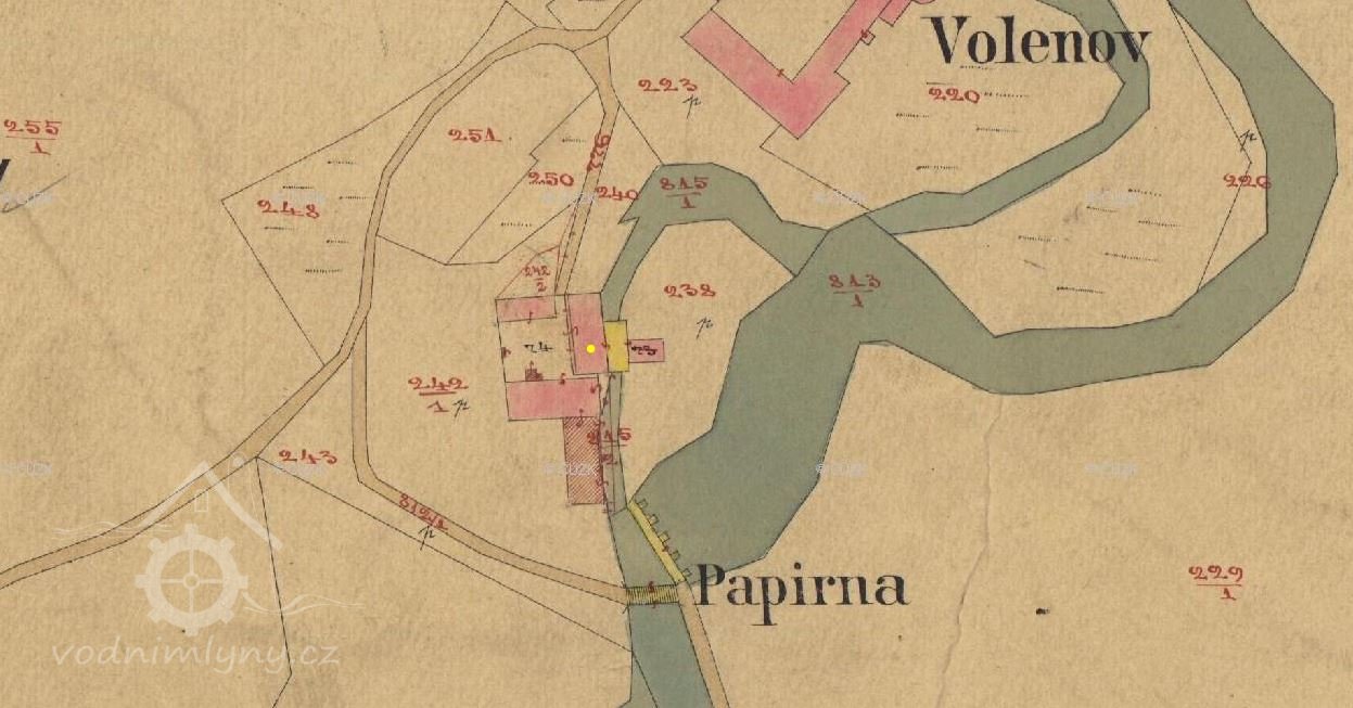 1744 dvory Volenov a Frídlovský přenechány do správy barona Adama Ludvíka Dochforta, ten 1746 zřídíl u mlýna papírnu
