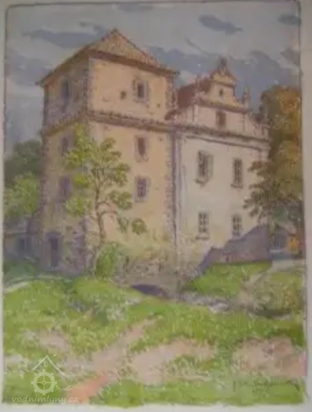 Co se týče stáří a původního účelu budovy, jedná se o objekt, vystavěný někdy ve druhé polovině 17. století jako renesanční tvrz. Její stavba byla tedy zřejmě realizována tehdejšími čerstvými vlastníky panství, Lichtensteiny. Toto tvrzení je doložitelné mapou z roku 1715, kde je objekt perspektivně zobrazen bez mlýnského kola nebo jiných typických atributů, zato s praporcem na věži. Tato mapa, jejíž autor není znám, se nedochovala v originále; její reprodukce se nachází v knize Antonína Semanského.