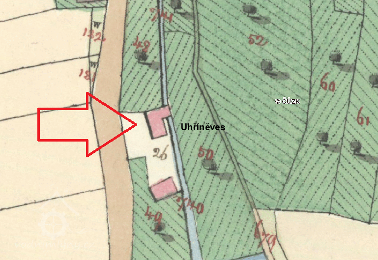 Kromě této mapy je objekt půdorysně zachycen také na mapě z roku 1909, reprodukované tamtéž. Podle popisu se jedná o kopii mapy M. Čermáka z roku 1806, překreslenou Aloisem Jírkem; originál Čermákovy mapy je dnes ale rovněž nezvěstný. Na této mapě je objekt, už nesoucí č. p. 19, označen jako mlýn, a jako nájemce ve vztahu emfyteuze (tedy dědičného nájmu) je uveden Václav Žilák.