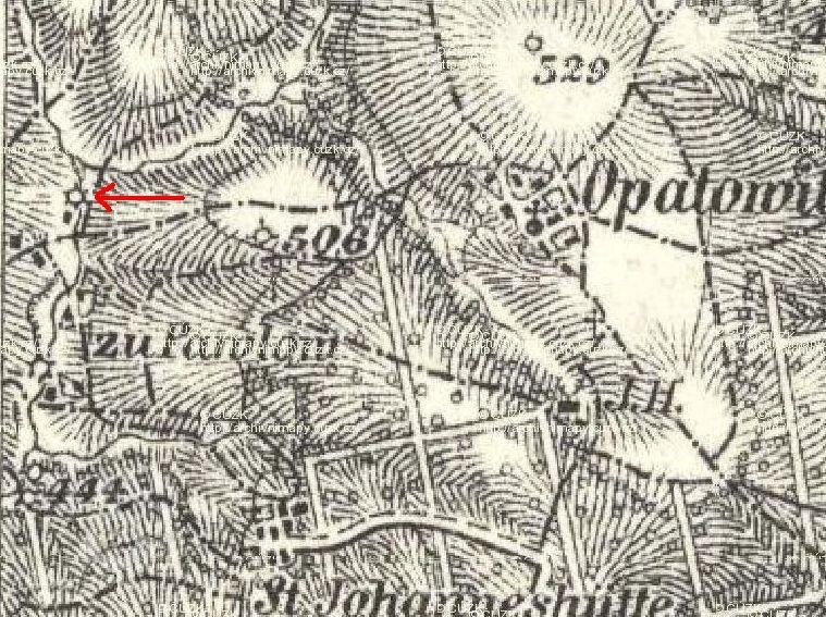 Na mapě II. vojenského mapování v letech 1836-52 je označen jako Obere Mühle.