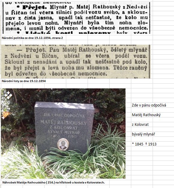 Nejstarší zmínka o kolovratském mlynáři pochází z 24. října 1655, jmenoval se Jan Kočka (matrika Uhříněves N1O1Z1 1655-1683)