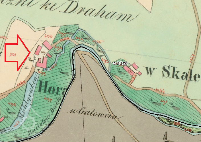 Na konci osady Cikánka, kde se potok dělil na "Jalový" a "Hlavní", který blíže silnice tvořil nádržku a jehož voda poháněla mlýnské kolo, stával válcový mlýn Václava Kaliny na Cikánce čp. 39, k němuž patřila velká zahrada. V roce 1886 přichází na mlýn Karel Kalina pocházející z Pod Wořešskýho mlejna v Chotči se svou ženou Annou Košákovou z Kozolup. Mlýn byl v dost špatném stavu hlavně jeho obytné stavení, jehož přízemí se nacházelo pod úrovní dvora a došková střecha byla zanedlouho doslova odnesena vichřicí. Měli syna Václava a dceru Marii Magdalenu. Hlavní silnice vedla tehdy jako u Kalinů pod Chotčí, středem dvora, takže kolem mlýna bylo stále velmi živo.
