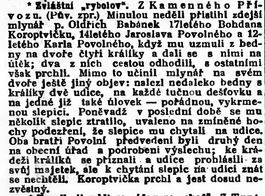 Kromě uvedených měst a velkostatku v Maršovicích se přilehlé obce ze starého konservatismu na odběr elektrického proudu nepřihlásili. Nepřihlásila se ani naše obec, ač měla elektrárnu v místě. Jedině hostinský Josef Hora již svítil v roce 1914.