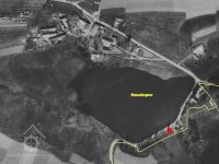 2.zápis – r.1933 schvalování mlýna; voda z rybníka Překážky cementovou rourou průměr 0,25 m do dřevěných vantrok 34x26 cm a dále na vodní kolo průměr/šířka 4,8/0,72 m.