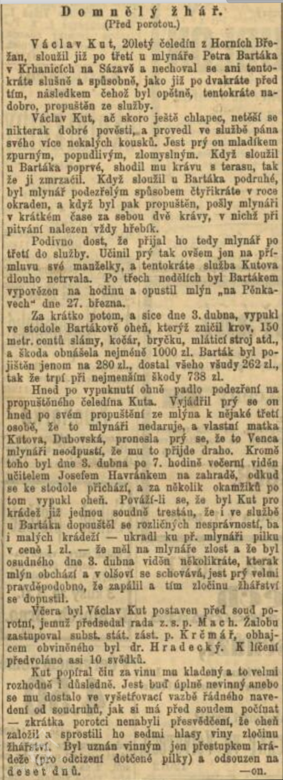 31 března 1800 na majetku se upisuje podíl nevěstě Kašpara Stárka (dceři Jana Rikla, mlynáře v Horním Pecerku na panství Radnickém), neboť přinesla věnem 1000 zlatých.