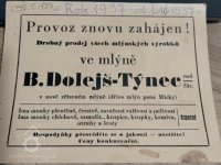 1937: poloautomatický mlýn, mlýnské zařízení od firmy Prokopec Praha - Vinohrady