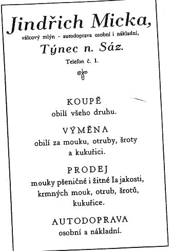 pol. 30. let Jindřich Micka přišel o majetek v důsledku neúspěšných burzovních spekulací, mlýn i dům U Micků přišly do dražby.