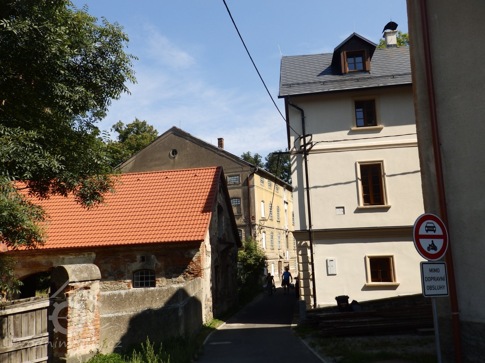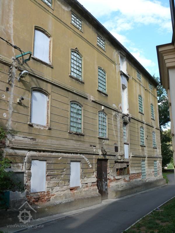 Mezi vlastním mlýnem a budovami čp. 6, 56 a 57 dvůr, kterým procházela cesta z Týnce do Brodců. Všechny obytné budovy na severu u svahu pod hradem byly jednopatrové, dole bývaly sklady, dílny a chlévy. Ve východní budově bydleli stárkové, mládkové a práškové, měli spojení krytým dřevěným mostkem přímo na mlýnský sál. Ve střední budově bydleli staří na výměnku, v budově západní majitel mlýna. K mlýnu patřila stodůlka, zahrada ve stráni až k hradu, zahrádka a jez s ostrovem.
