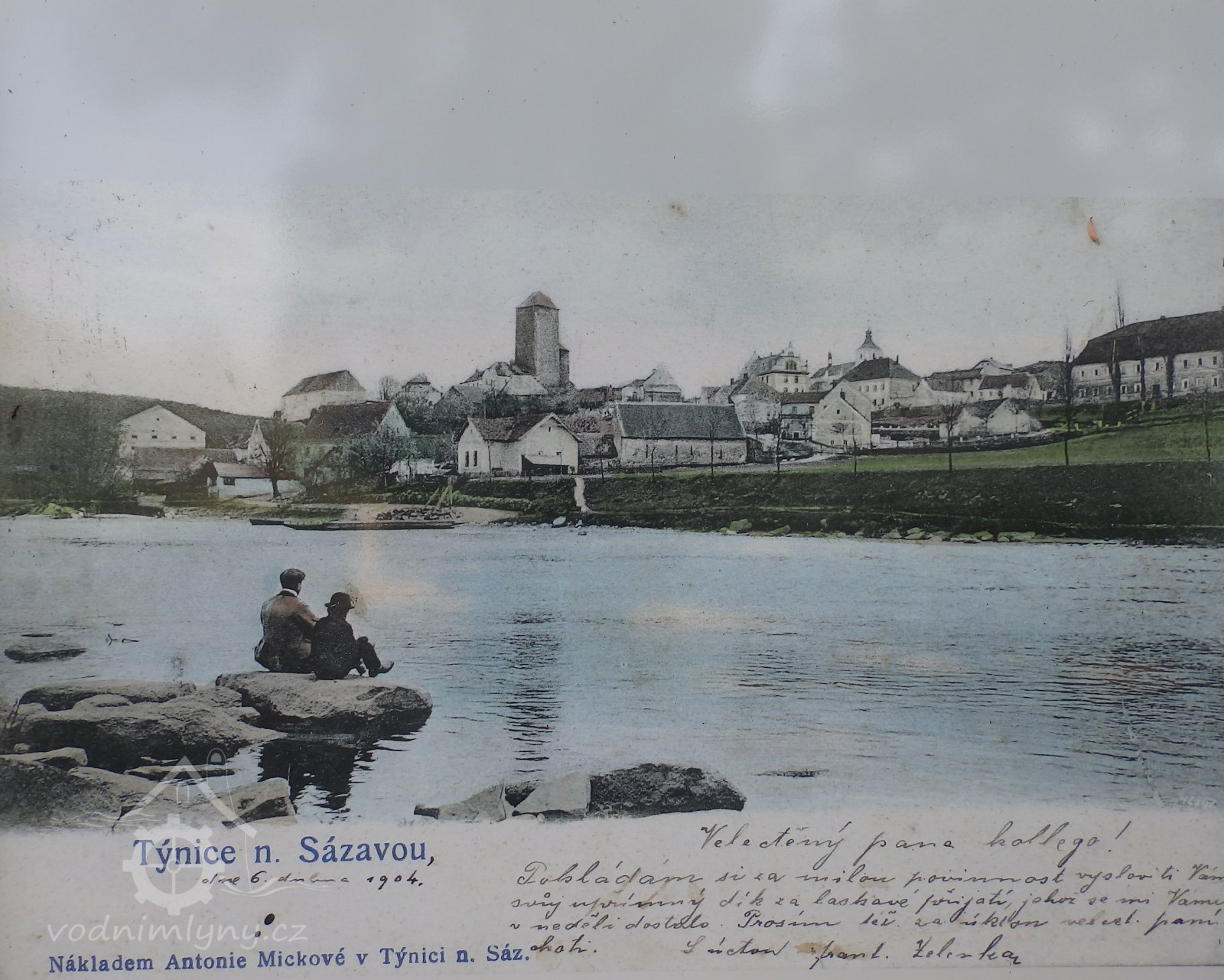 Připomínán již k roku 1544. V roce 1760 mlýn prodán Tomáši Stárkovi, který však špatně hospodařil a mlýn musel být prodán v dražbě. 1796 zřízena v sousedství fabrika na týneckou kameninu, rovněž na vodní pohon. 1880 nechal Jindřich Micka původní mlýn zbořit a postavil zde moderní válcový mlýn, roce 1937 instalována turbína, ve 20.stol. však mlýn prošel prudkými zvraty - jeden majitel zde zkrachoval, další uprchl do USA. Před demolicí plánovanou k 31.1. 1990 zachránily mlýn nevyřešené restituční nároky.