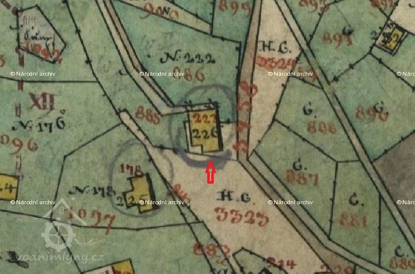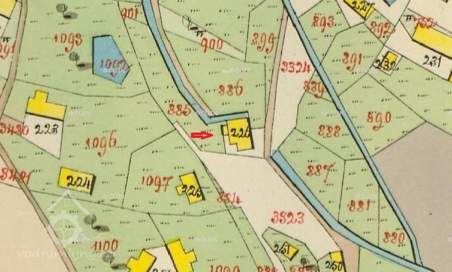 Od konce 18. století vlastnil mlýn čp. 222 zvaný "dolní" místní mlynářský rod Wobischů, který vlastnil současně také druhý, "horní" mlýn v obci čp. 135.