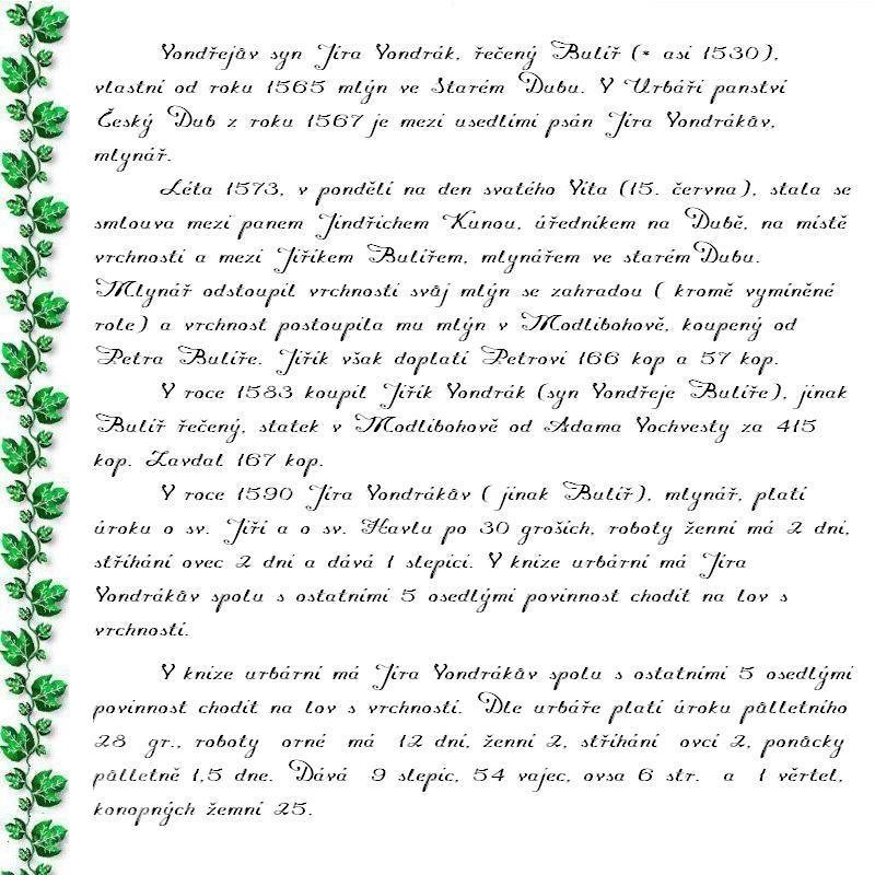 Jest majitel starodubského mlejna povinen pro starodubskou milostivou vtchnost, pro její služebné a čeládku obilí zdarma semlet, tj. žádný plat nepožadovati, všechen šrot pro potřebu vrchnostenského dobytka semlít a v pádu tom, že by zaseji jedenkráte pivovat řídit se měl, tak slad bez platu a bez maření jen proti již od starodávna patřícím 4 konvím piva sešrotovati zavázán.