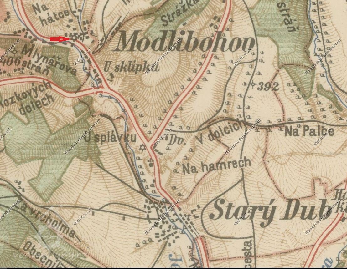23. března 1797 koupil Josef Burda, mlynář na panství vartemberském ve Starém Dubě, mlýn modlibohovský od Ignáce Richtera (který koupil mlýn ve Starém Dubu) s právem péci chleba a s krupařstvím za 1 200 zlatých. V únoru toho roku se oženil s Barborou, dcerou mlynáře Daniela Kuchynky z Dolního Krnska na panství Brodeckém / svatební smlouva byla německá/. V roce 1798 se jim narodil syn Václav a již 28. června 1800 mlýn prodali za 5 600 zlatých.